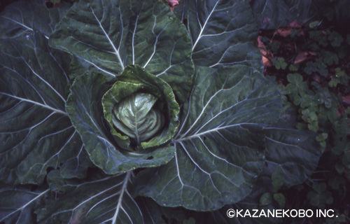 キャベツは露にぬれているのが、どういうわけか好きなのだ。 |
