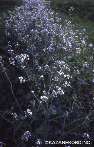 火山先生の工房跡地の少し手前のところでダイコンの花が咲いていた。 |