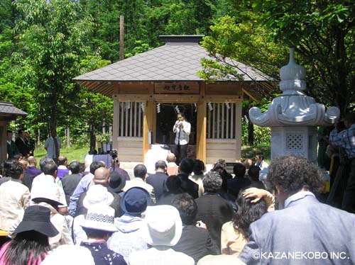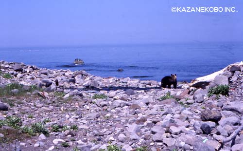 翌26日は、前出のそうそうたる皆さんが知床の番屋へ行き、 漁師の安全祈願をして下さった。僕も同行させてもらった。 知床大橋の先へは一般の人へは入れない。 僕も一度だけ連れて行ってもらったことがあるが今回で2回目になる。 前回はルシャ川に帰って来たマスが群れをなしていた秋の頃だった。 |