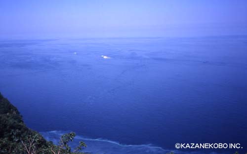 今回は、途中で休みながらゆっくりと向かった。 途中、カムイワッカの滝が注ぐ海を眼下に見下ろした。 硫黄が海に流れ込んでいるのが良ーくわかる。 |