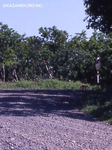 行く方向を見ると、キタキツネがうろうろしていた。