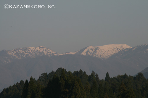 ホテルへ戻る時に遠くの山並を見ると、 雪をかぶった能郷白山が実にきれいだった。