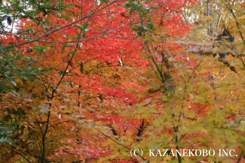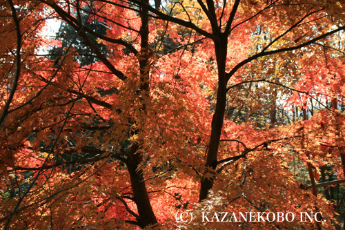 今年のもみじは今までで一番素晴らしいかも知れない。 朝の光に輝く紅葉。 昼頃の紅葉。 それぞれが気持ち良くなるほど透き通っている。