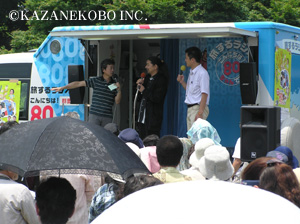 今日はNHKラジオ『こんにちは!80ちゃんです』の公開生放送がありました。宗次郎のふるさとでもある”群馬県”館林花菖蒲園からの中継ということもあり、番組放送時には地元のみなさまが大勢お集まりくださいました。放送は午前11:30から11:50。アナウンサーの金井さんと望月さんのさすがプロといった感じの進行のもと、あっというまの20分間でした。夕日を見に行った少年時代の話や、ここつつじヶ岡公園でのアルバイトの話、ギターの弾き語りをしていた話など、地元館林ならではの話題で盛り上がっておりましたよ。