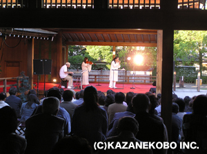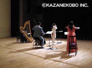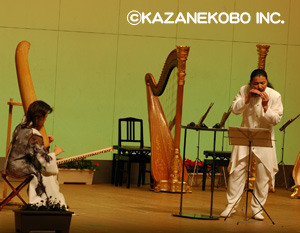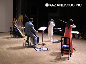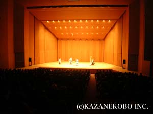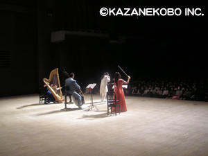 こしがや能楽堂でオカリナ、キーボード、ヴァイオリンという編成で行われたコンサート。 この日は能楽堂での演奏ということで、宗次郎の音楽にはぴったりのロケーションではないかと思っておられた方も多かったのではないでしょうか?そう、まさにピッタリでした!日本の伝統文化伝承の地で奏でられるオカリナは、何とも言えない趣がありました!