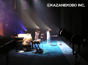 7月12日(土)大阪厚生年金会館芸術ホールで『土の笛のアヴェ・マリア』コンサートの最終公演が行われました。ご来場頂きましたお客様、たいへんありがとうございました。 写真は舞台上手袖、客席から見るとステージ右手の袖幕奥に隠れているミキサー卓から撮ったショットです。このミキサー卓では、広いステージ内で、各演奏者が周りの演奏者の音を適正音量で聞けるようにバランスをとる機械なんです。