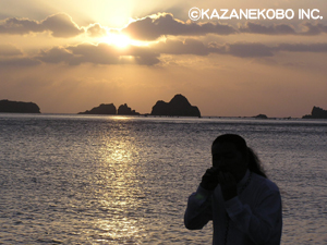 10月5〜7日の3日間、宗次郎は鹿児島放送の番組ロケで南薩摩地方を訪ねました。写真とともにレポート 《写真上から1番目》 まず訪れたのは坊津。古くは鑑真が上陸した場所として、また江戸時代には薩摩藩の密貿易港として栄えた町としてもとても有名です。いにしへの風を感じ、遠い歴史に思いを馳せながら、オカリナを奏でる宗次郎。 《写真上から2番目》 南薩摩地方には、国の重要無形民俗文化財に指定されている「南薩摩の十五夜行事」というものがあります。十五夜になると行われる特別な行事で、各集落ごとにそれぞれ独自の行事が伝わっているそうですが、その中で今回宗次郎が訪れたのは上ノ坊の十五夜のお祭り。綱を作り、相撲をとり、綱引きをするお祭りとの予備知識を頭に入れて、そのお祭りをはじめから拝見させて頂きましたが、とてもそれだけではない何か特別な行事、儀式といった感じでした。とても不思議なお祭りでした。写真は綱をつくっている様子。 《写真上から3番目》 南さつま市黒瀬、、ここは焼酎造りの現場監督ともいえる”杜氏”の里として特に有名で、黒瀬出身の杜氏を特に”黒瀬杜氏”と言うそうです。今回番組の中でお訪ねしたのは、薩摩酒造の明治蔵。そこには黒瀬杜氏の宿里道夫さんがいらっしゃいました。杜氏の技を宿里さんに直接お伺いし、宗次郎も焼酎造りを少しだけ体験させて頂きました。 《写真上から4番目》 坊津の海岸には、かつて貿易が盛んだった頃の時代を思い起こさせる様な陶器片があちらこちらに落ちています。中には中国の明、清代のころに作られたものも。また坊津の海岸は夕陽がきれいでしたよ!写真は夕陽を背にオカリナを奏でる宗次郎。 《写真上から5番目》 番組内で宗次郎とともにリポーターを務める川崎志保さん。川崎さんは、幕末薩摩藩が薩摩焼を使ったアクセサリーとして海外に輸出していた薩摩ボタンを現代に復刻させ、創作活動を続けている薩摩焼絵付け師。今回の取材で得たインスピレーションをもとに、坊津をテーマにしたボタンを創ります。 と、内容盛りだくさんの番組ですが、放送予定日は鹿児島放送にて12月23日(土)。その後テレビ朝日系列にて全国に展開予定です。詳細が分かり次第『スケジュール』にUP致します。乞うご期待!
