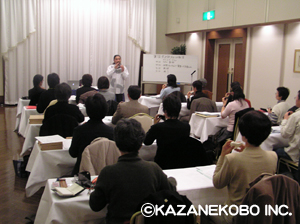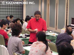 3日の東京に続いて、10日には大阪でファンクラブイベント『オカリナワークショップ』が催され、前回の東京同様オカリナにとても熱心な方々にご参加頂きました。ありがとうございました。 前回の東京会場では、宗次郎の前でオカリナを吹くということにはさすがに緊張なされたのか、しばし固い雰囲気もあったように思いましたが、ここ大阪会場では、宗次郎が「僕に演奏を聞いて欲しい方がいれば、、、」と言うと即座に多くの方が挙手。最終的には全員の方に吹いて頂き、それぞれに宗次郎もアドバイスをさせて頂きました。また質問コーナーも大きく時間をオーバーし、予定していたタイムテーブルとは少し異なってしまいましたが、宗次郎も「言いたいことは言えたかな」というように、結果的にはとても充実した内容になったのではないかと思われましたが、いかがだったでしょうか? 最後はサイン会&宗次郎制作のオカリナの試奏会。宗次郎のオカリナをまさか吹けると思っていなかった方も多かったようで、みなさんとても喜んでおられました。 12月には名古屋会場を予定しておりますので、参加希望者の方はまずは風音工房までご連絡ください。 (写真は会場の様子。一番下のオカリナをみなさんに吹いて頂きました)