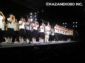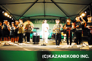 『15年目の根尾の夏・・・・宗次郎が奏でる愛唱歌、叙情歌で根尾の夏でしかできない土の音・自然との調和をお楽しみください。』と謳われた今年の根尾でのコンサート。 ここ数年は本番こそ雨は降らずとも、コンサート直前まで雨に降られることも多く、あまり天候には恵まれませんでしたが、今年は違いました。コンサート準備期間中から全く雨は降らず、とても気持ちの良い根尾の空気を味わうことが出来ました。むしろ、日中の暑さは根尾も東京もさほど変わらないくらいでした。 さて、18時30分に本巣市長にご挨拶を頂き、いよいよ宗次郎コンサートのスタートです。ニューアルバムから「朝もやの中から」を皮切りに、叙情歌、愛唱歌を中心としたセットリストで今回は行われました。陽が落ちた根尾は日中とは対照的にとても涼しく、ミュージシャン達の演奏、照明がさらに心地良い空間を創造します。そして見所は何と言っても根尾中学生とのオカリナ合奏、さらに今回は宗次郎作曲「本巣市民の歌 羽ばたいて」での本巣中学生との合唱でした!もはやサインもせがまれる?根尾中学生の堂々たる演奏、今回が初出演の本巣中学生の初々しさ、これがあるから根尾に来たいというファンの方も。アンコールは「天空のオリオン」に加えて、当初予定には無かった「至福の海」を演奏し、今年の根尾コンサートが終わったのでした。 .